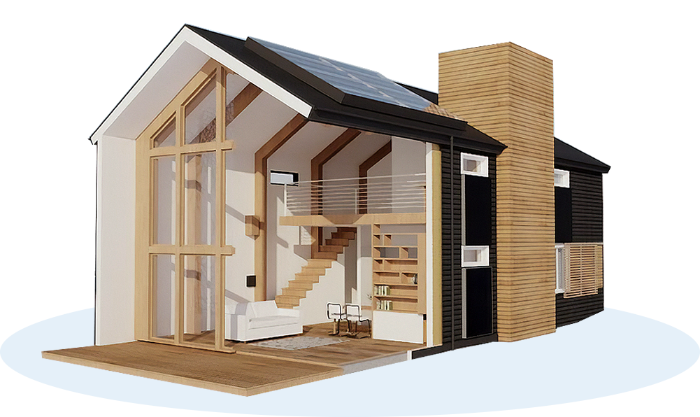 Дома в стиле «Амбар» - это простые формы, современный комфортный минимализм, отсутствие перегородок и прочная конструкция. В середине XX века в Европе стали переделывать старые сельские амбары, конюшни и зернохранилища в жилые дома. Так появился экологичный лофт Barn House. В основе такого дома – надежный каркас из бруса, двухскатная крыша, большие панорамные и мансардные окна, второй свет в доме, строгая без излишеств обшивка металлом или деревом снаружи и деревянная отделка внутри дома. К дому прилегают большие открытые террасы, ландшафт является неотъемлемой частью интерьера и экстерьера дома-амбара. Особенная форма дома с двускатной крышей и правильная теплоизоляция обеспечивают высокую энергоэффективность и комфорт.